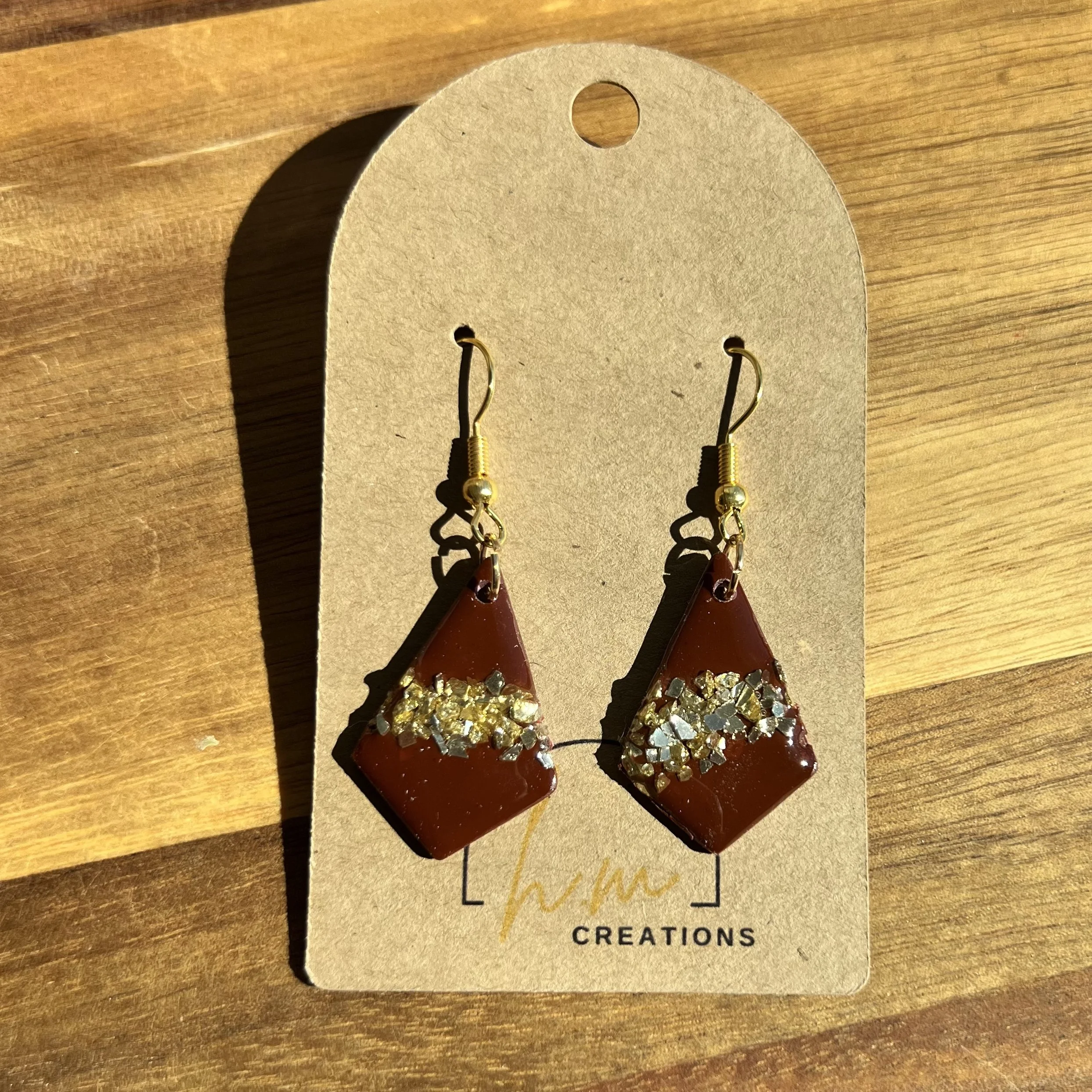 Maroon polymer clay earrings with gold accents